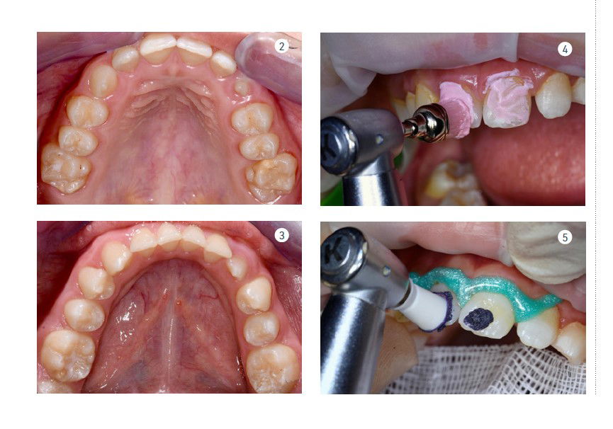 Lo studio descrive il caso clinico di un ragazzo di 11 anni che ha richiesto un trattamento per correggere delle macchie bianche presenti sulla superficie degli elementi centrali superiori. Questo caso e stato classificato come MIH sulla base di esami radiografici e clinici (Fig. 1, Fig. 2, Fig. 3). Prendendo in considerazione il tipo di lesione, e stato deciso di procedere con un trattamento combinato, eseguendo la tecnica di microabrasione con OpalustreR (Ultradent, St. Louis, MO, USA) e quella di infiltrazione di resina con IconR (DMG, Amburgo, Germania) secondo le istruzioni dei produttori. È stato utilizzato Optragate per permettere la retrazione delle labbra e delle guance, fornendo l'isolamento esterno e facilitando la visione completa.